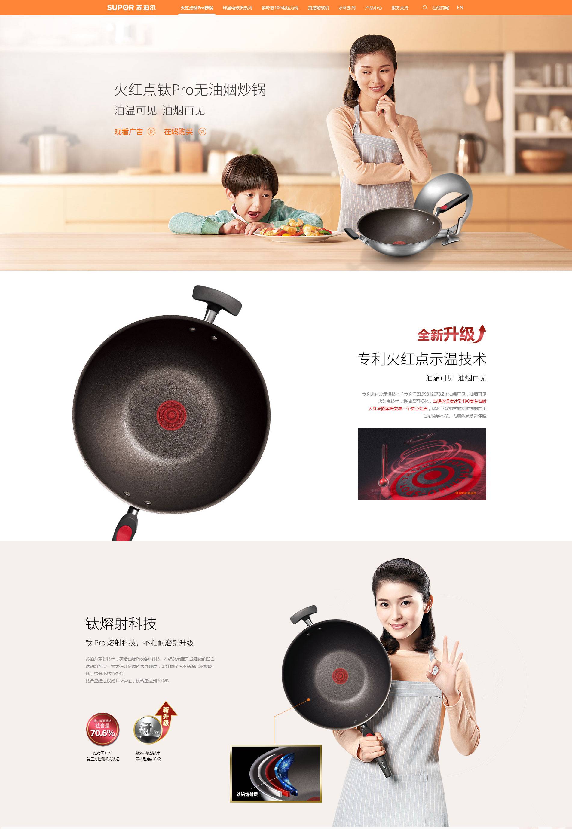 品質(zhì)和創(chuàng)新是蘇泊爾最重要的品牌價(jià)值, 環(huán)境家居領(lǐng)域,蘇泊爾在空氣凈化器、吸塵器、掛燙機(jī)等品類的新品上市,令市場(chǎng)份額不斷增長(zhǎng)。整站圍繞蘇泊爾的品牌和產(chǎn)品做布局。突出蘇泊爾科技性和展現(xiàn)家用的溫馨一面;結(jié)合日常營(yíng)銷的需求,首頁(yè)爆款打造。整個(gè)網(wǎng)站做到多而不亂,重點(diǎn)突出!