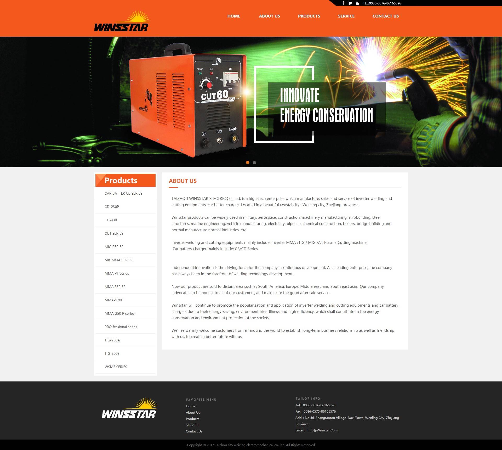 TAIZHOU WINSSTAR ELECTRIC Co., Ltd. is a high-tech enterprise which manufacture, sales and service of inverter welding and cutting equipments, car batter charger. Located in a beautiful coastal city –Wenling city, Zhejiang province.